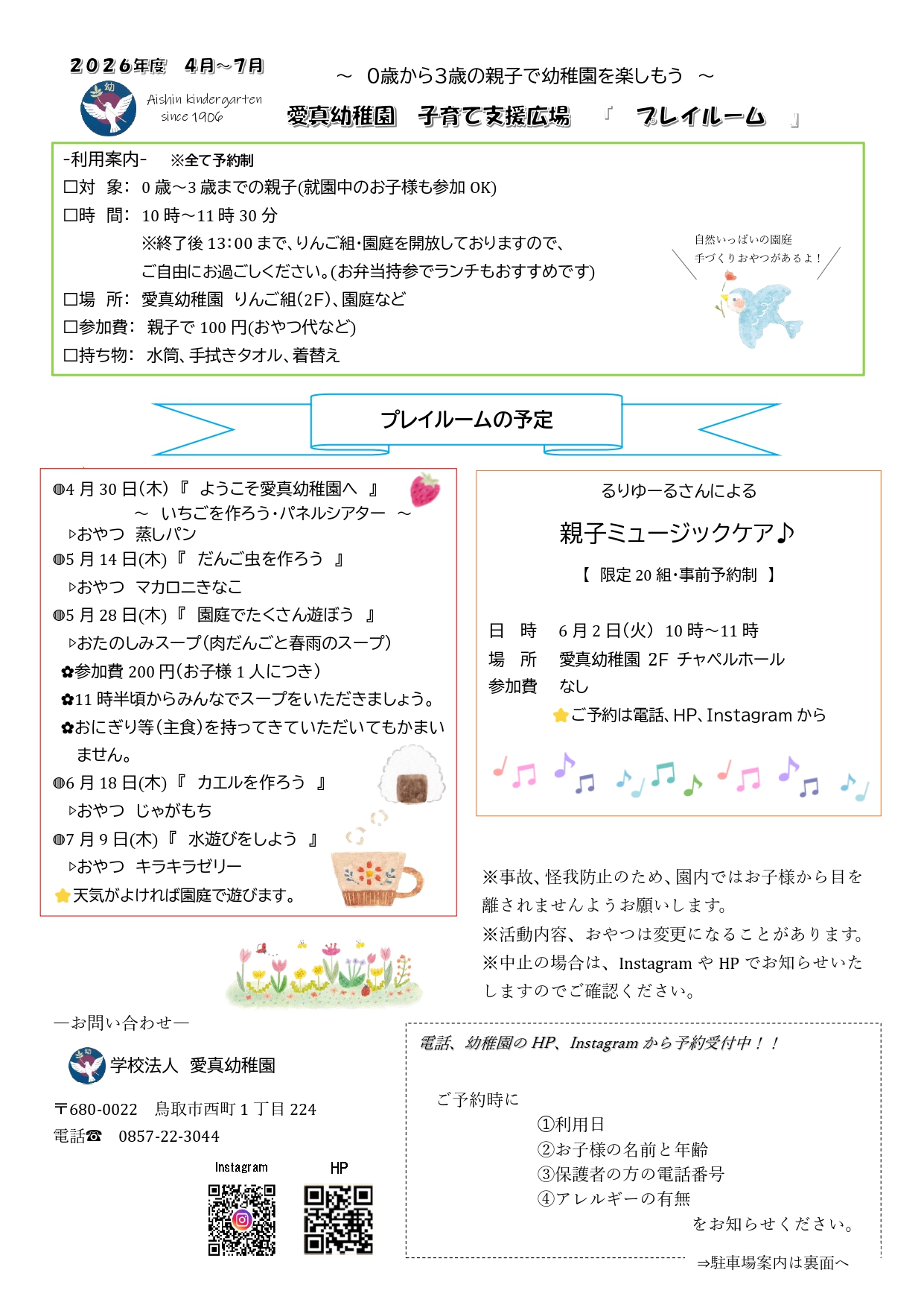 ※終了後13:00まで、りんご組・園庭を開放しておりますので、ご自由にお過ごし下さい。